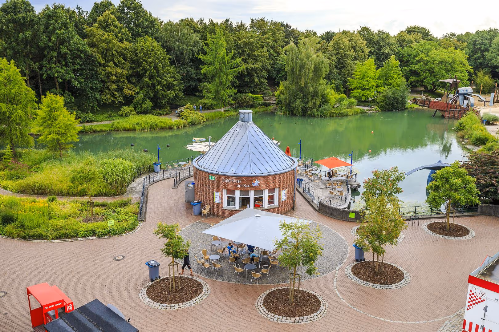 … führen durch bunte Gärten, Stauden- und Gräser-Pflanzungen, jahreszeitlich wechselnde Beete, über urwüchsiges Haldengelände, vorbei an einem Teich- und Sumpfgebiet bis hin zu verschiedenen Themengärten. Tauchen Sie ein, in eine Welt aus Kunst & Natur. In allen Parkbereichen laden Sitzplätze zum Verweilen und Ausruhen ein. Am künstlich angelegten Maximiliansee laden inmitten der farbenfrohen Uferbepflanzung die Seeterrassen zu einer gemütlichen Ruhepause ein. Hier verwöhnt sie unser Gastronom.